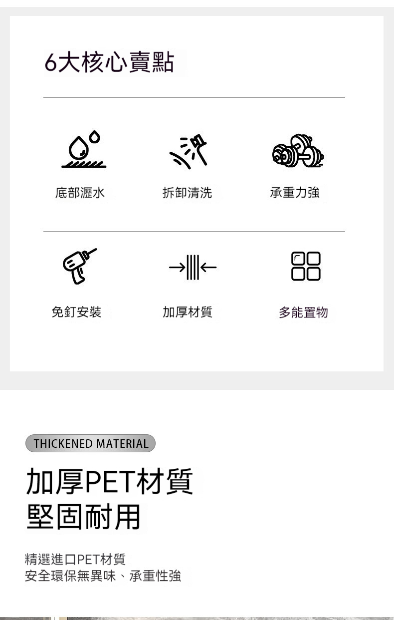 12分鐘前【免打孔吸盤置物架】免鑽孔不傷牆!隨心換位不留痕!乾淨整潔收納無拘束! - 【促銷活動】六入組 - NT$1580(均價263/入)